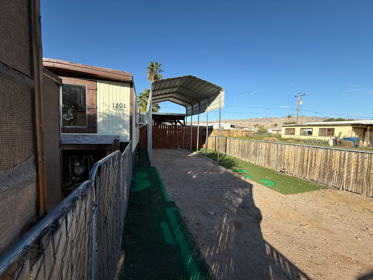 Charming 1.5-bed Home with Exceptional Outdoor Features! Welcome to this adorable and well-maintained home that offers both functionality and outdoor appeal. Perfect for toy lovers and outdoor enthusiasts! Key Features Include: Covered RV Parking Area complete with clean-outs for easy maintenance. Spacious, Fenced Backyard with a paved, covered patio ideal for relaxing or entertaining. Long Driveway plenty of room for boats, trailers, cars, or other toys! Step inside to the Arizona room a great flex space with an extra-large secure door to safely store motorcycles and outdoor equipment. Extra bedroom has no closet but can be considered as a second bedroom. Inside you ll find upgraded finishes throughout, including: New laminate flooring Updated wood kitchen cabinets, Upgraded bathroom with modern shower and vanity. Pride of ownership shows with mature fruit trees producing: Grapefruit, Lemons, Pomegranates, Oranges. Bring all your toys and enjoy easy access to outdoor recreation, just minutes from the Colorado River, Lake Mohave, Laughlin, and Parks City Center!
