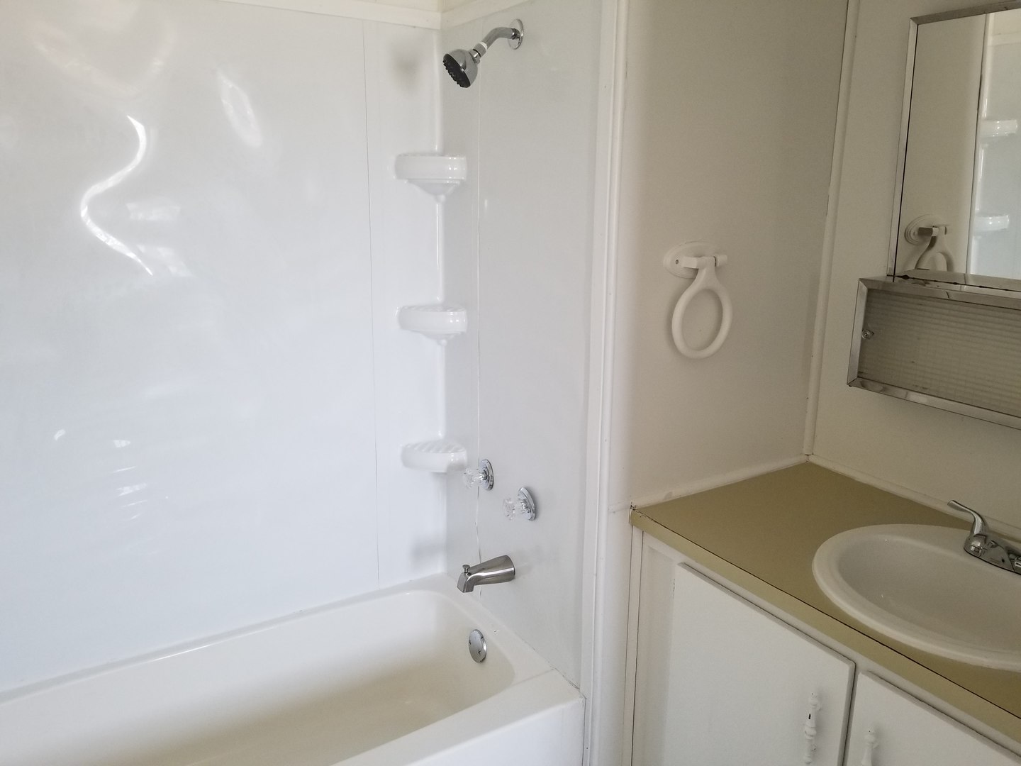 Cute 2 bedroom 1 and 1/2 bathroom, single wide, Covered Patio, Fenced yard with large storage unit.