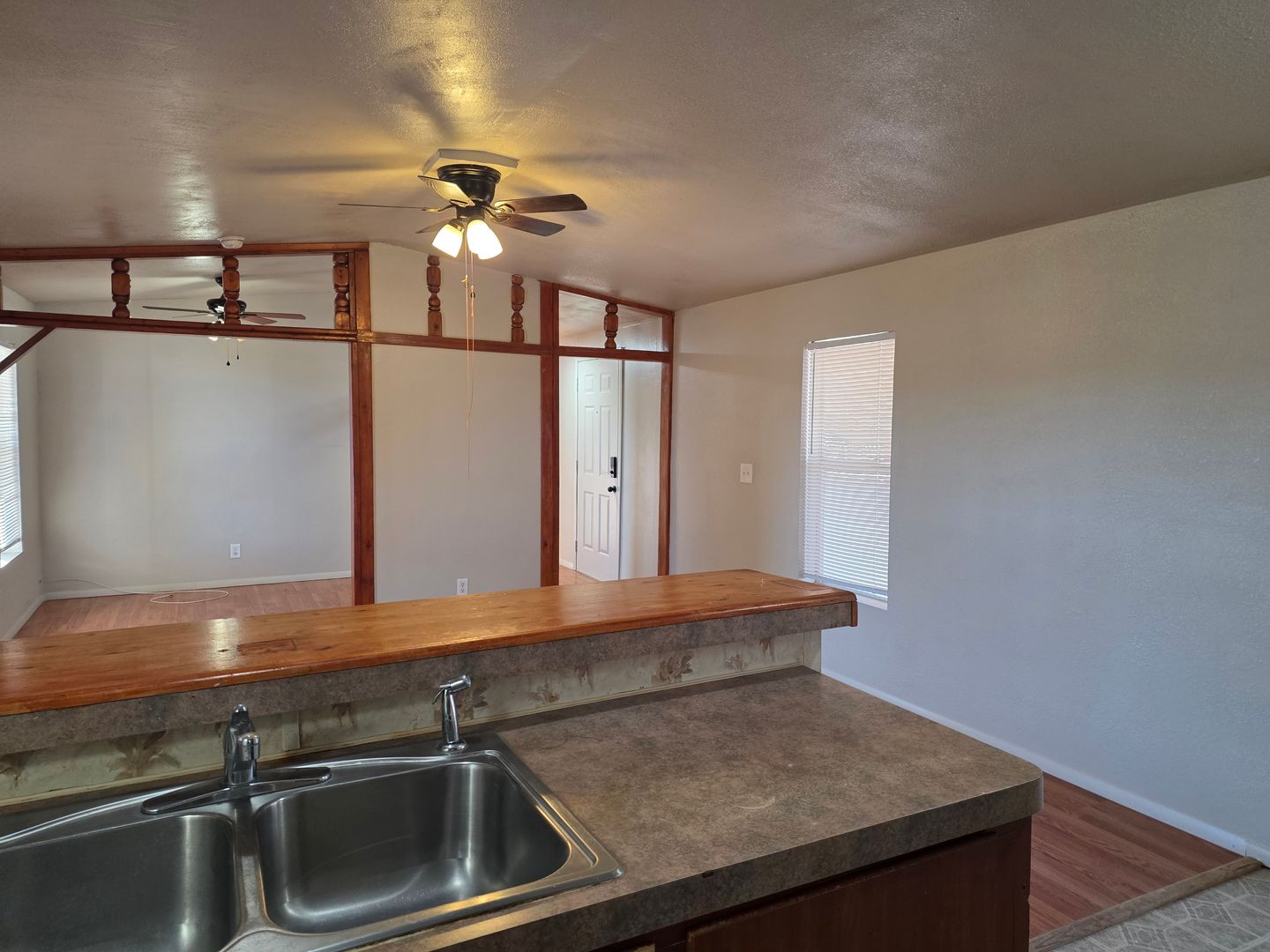 This home is absolutely adorable—like something out of a fairy tale! This 2 bed, 2 bath manufactured home with an enclosed Arizona room offers a little something for everyone. Enjoy hard-surface flooring throughout (no carpet!) and warm wood trim details that add character to every room. The layout includes a designated dining area plus a convenient breakfast bar.