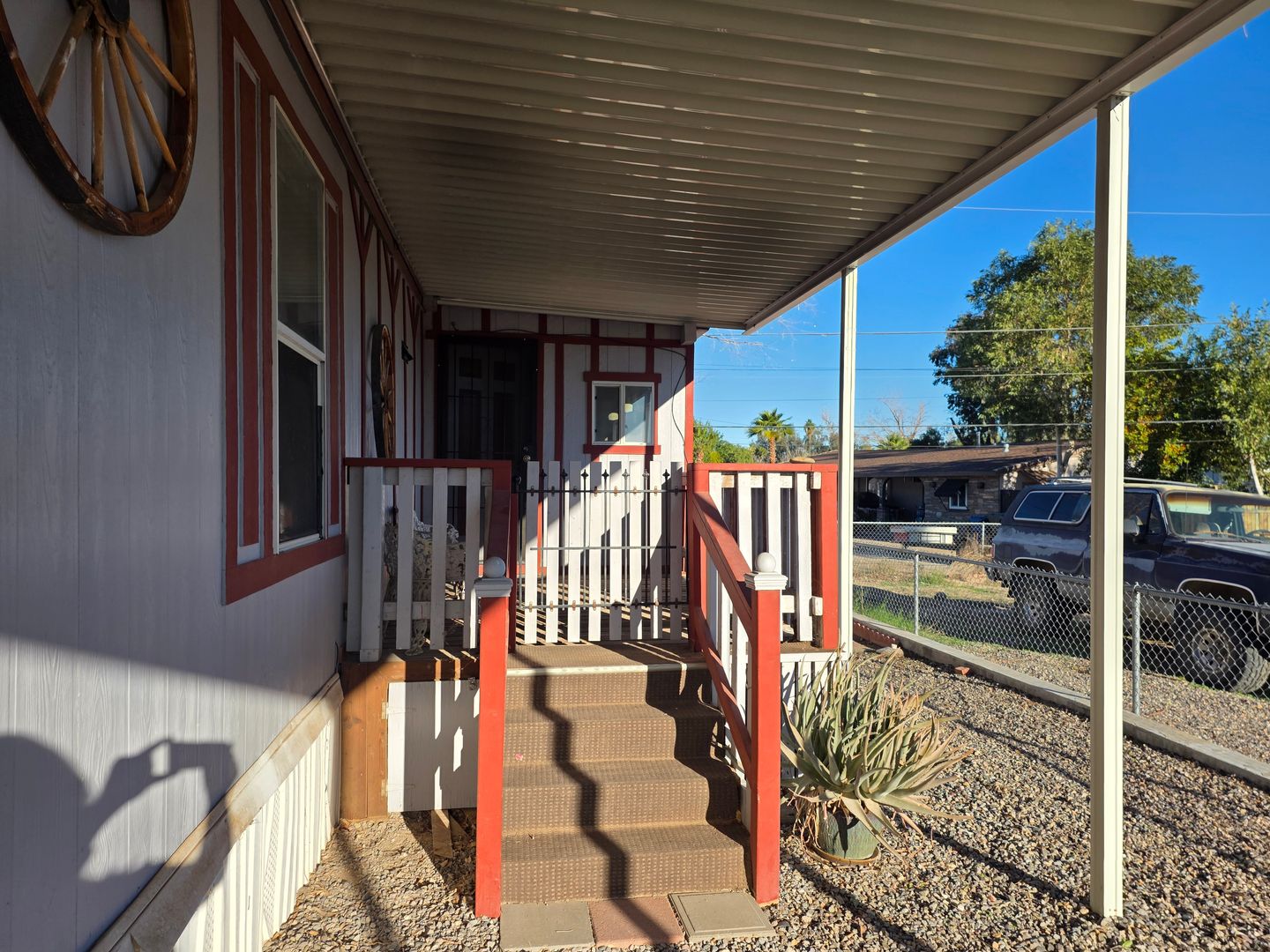 The enclosed AZ room makes an excellent office, playroom, hobby space, or even an extra guest area. Outside, you’ll find covered parking on both sides of the home and a large storage shed for all your extras in a fully fenced yard.
