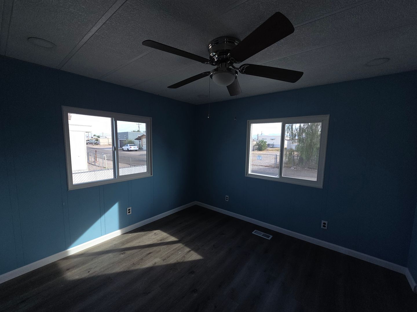 Welcome to your new home! This freshly remodeled 2-bedroom, 2-bath manufactured home is move-in ready and full of charm. You’ll love the open, split floor plan with hard-surface flooring throughout—no carpet to worry about! The spacious kitchen has tons of cabinets for storage, a designated dining area, and plenty of room to cook and gather. Enjoy the convenience of in-home washer and dryer hookups, central A/C and heat, and brand-new double-pane windows to keep things comfortable year-round. Outside, you’ll find a covered patio, a fully fenced yard, and plenty of parking. There’s even a tough shed for extra storage space. Centrally located in Bullhead City —just blocks from stores, schools, and parks—so everything you need is close by. Come see it for yourself and make it your new home today!