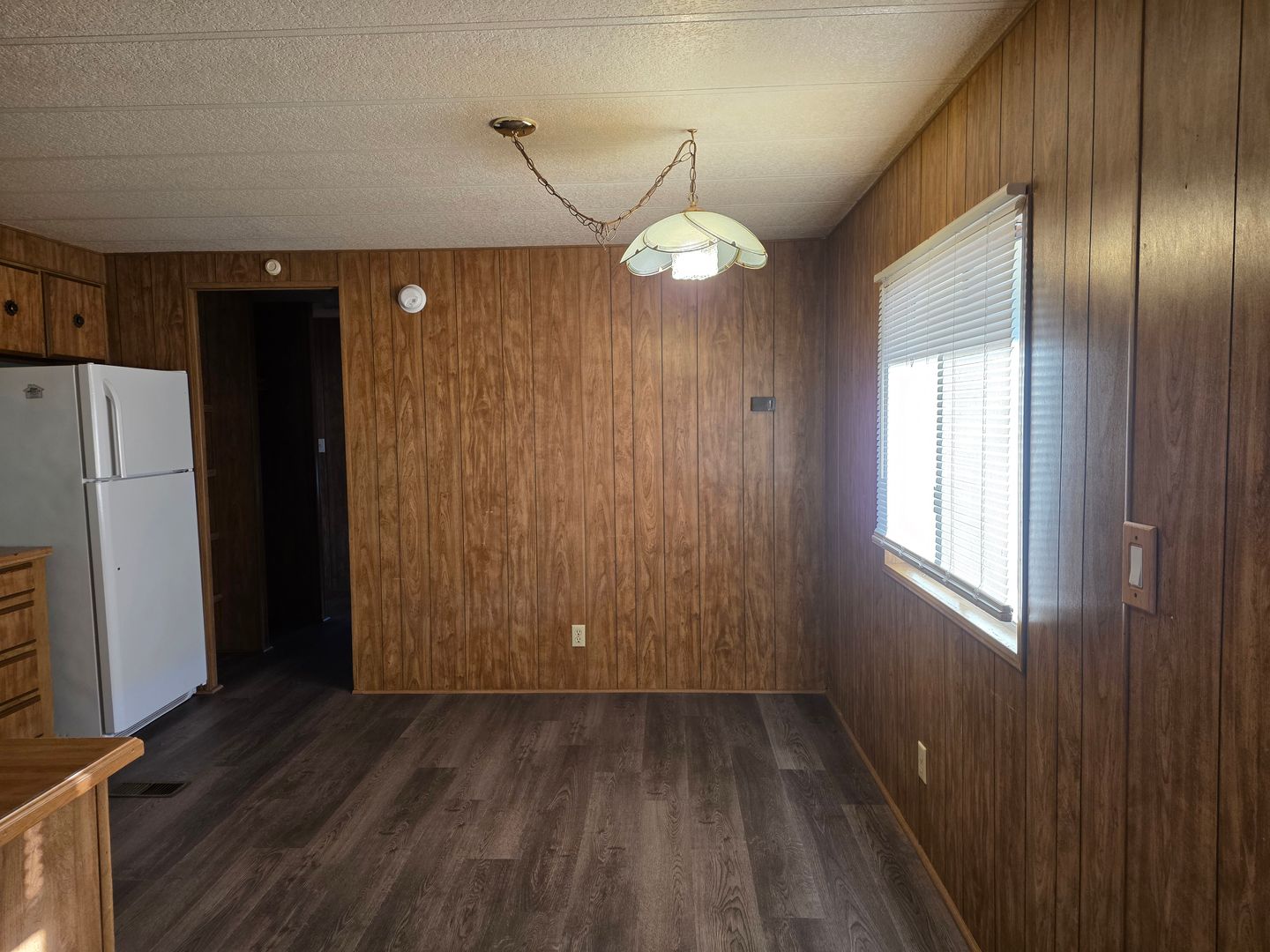 Fully fenced corner lot with covered porches on both sides and a spacious Arizona Room, perfect for relaxing or entertaining. Inside, enjoy a bright, open layout with new vinyl plank flooring throughout most of the home. The kitchen includes a refrigerator and dishwasher, and a washer and dryer are also included.