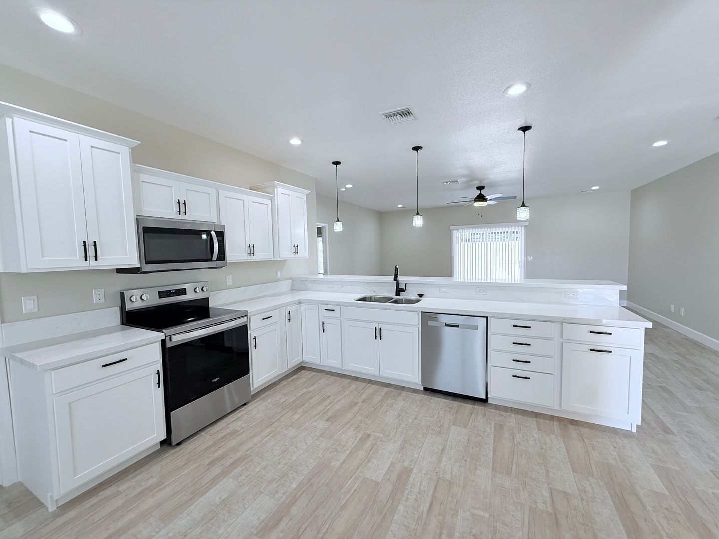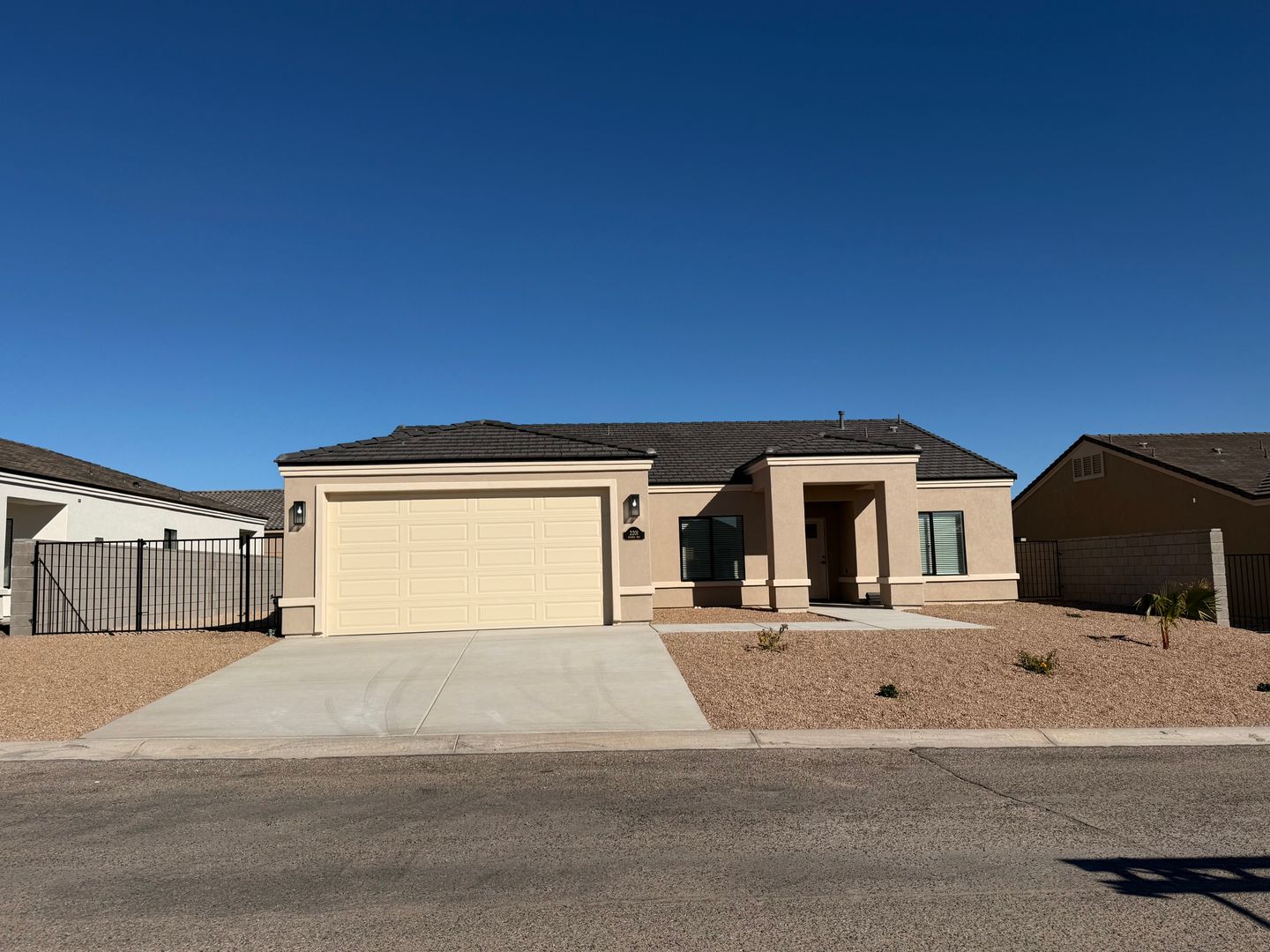 Welcome to this stunning new construction home located in the desirable area of Fort Mohave, AZ. This property boasts three spacious bedrooms and two full bathrooms, offering ample space for your needs. The home is designed with an open concept layout, creating a seamless flow between living spaces and promoting a sense of togetherness. The kitchen is a chef's dream, featuring a large pantry for all your storage needs. The home also includes a large laundry room, adding convenience to your daily routine. The property is enclosed by a block wall, providing an added layer of privacy and security. This home is a perfect blend of style, comfort, and functionality.