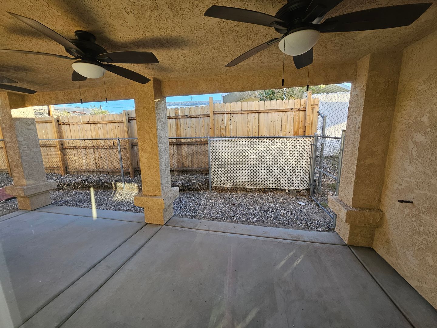 Welcome to this charming 3-bedroom, 2-bathroom home located in the vibrant Bullhead City, AZ. This property boasts a spacious layout with solid flooring throughout, ensuring durability and easy maintenance. The covered patio is a perfect spot for outdoor relaxation, offering a comfortable space to enjoy the beautiful Arizona weather. The large fenced yard provides ample room for outdoor activities and gardening, adding to the appeal of this home. This property is a perfect blend of comfort and convenience, offering a lifestyle that is hard to resist. Don't miss out on this opportunity to make this your new home. Pets OK