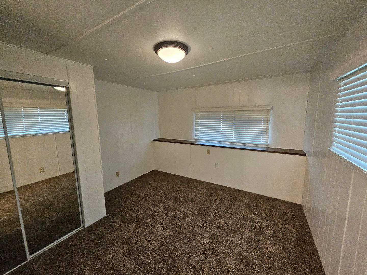2 bedroom, 2 bathroom mobile home. Newly remodeled with new flooring and paint. Indoor washer & dryer hook ups, covered parking and patio. Fully fenced and storage.