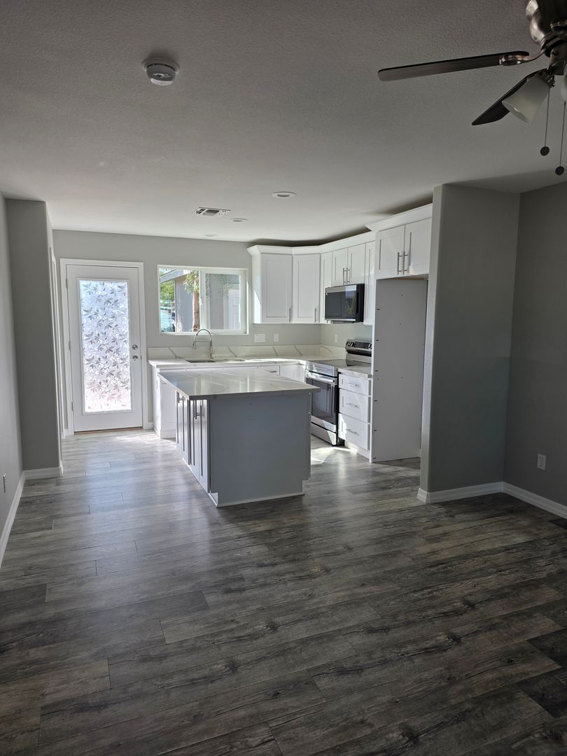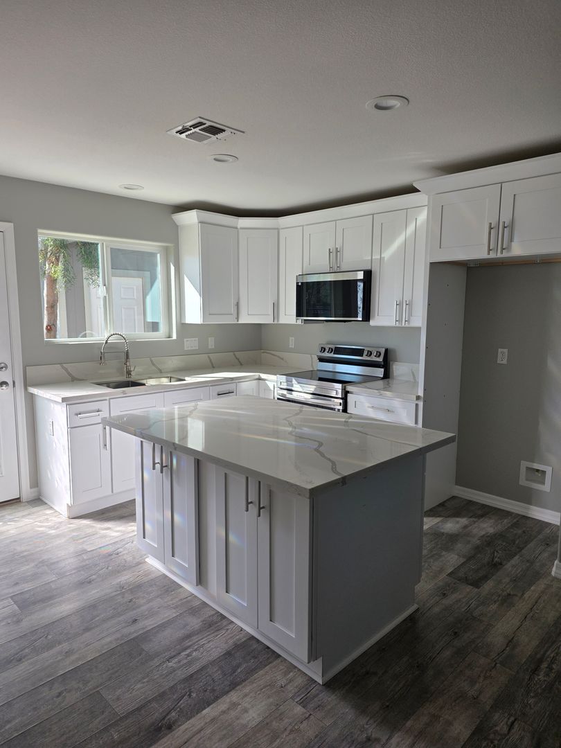 Almost brand new, this charming home is move-in ready and packed with upgrades! Enjoy stylish vinyl plank flooring throughout, gorgeous white cabinetry, and durable solid surface countertops complemented by a spacious island and sleek stainless steel appliances. The fully fenced backyard features low-maintenance artificial grass and a full storage unit—perfect for extra space and convenience. Cute, clean, and ready for you to call home!
