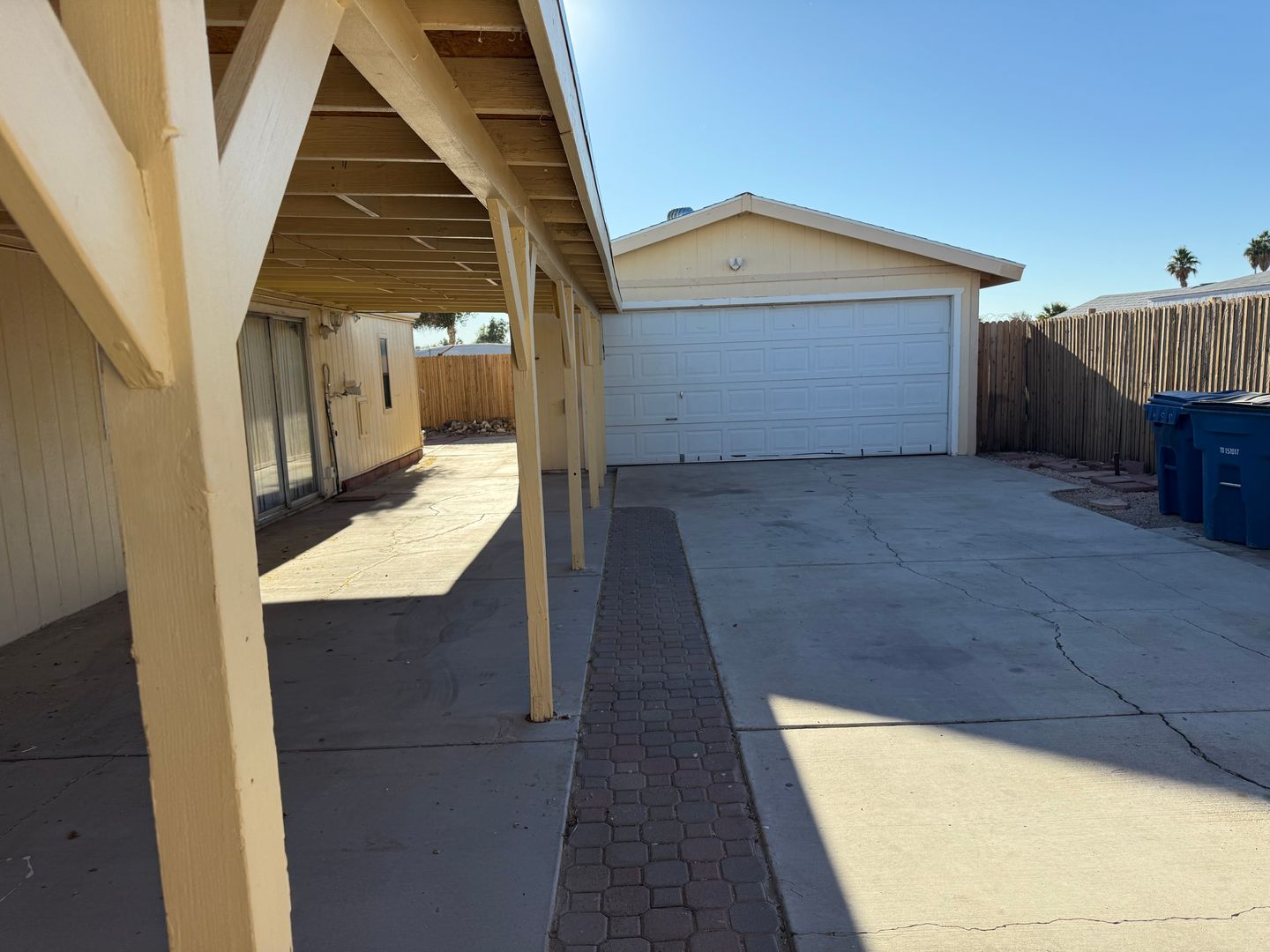 Welcome to this freshly remodeled, spacious doublewide home located in the vibrant city of Bullhead, AZ. This property features three generously sized bedrooms, two full bathrooms, and a large walk-in closet, providing ample storage space. The home features beautiful laminate flooring throughout, adding a touch of elegance and easy maintenance and has been freshly painted throughout. Both sides of house have driveways with gated fencing for ample parking of boats, Rv or large toys. The 2-car garage offers secure parking and additional storage options. Enjoy the outdoors from the comfort of your covered patio, perfect for entertaining or simply relaxing with a landscaped backyard for relaxation. The home also comes with window coverings, providing privacy and control over natural light. This property combines style, comfort, and convenience, making it a perfect choice for those seeking a high-quality living experience.