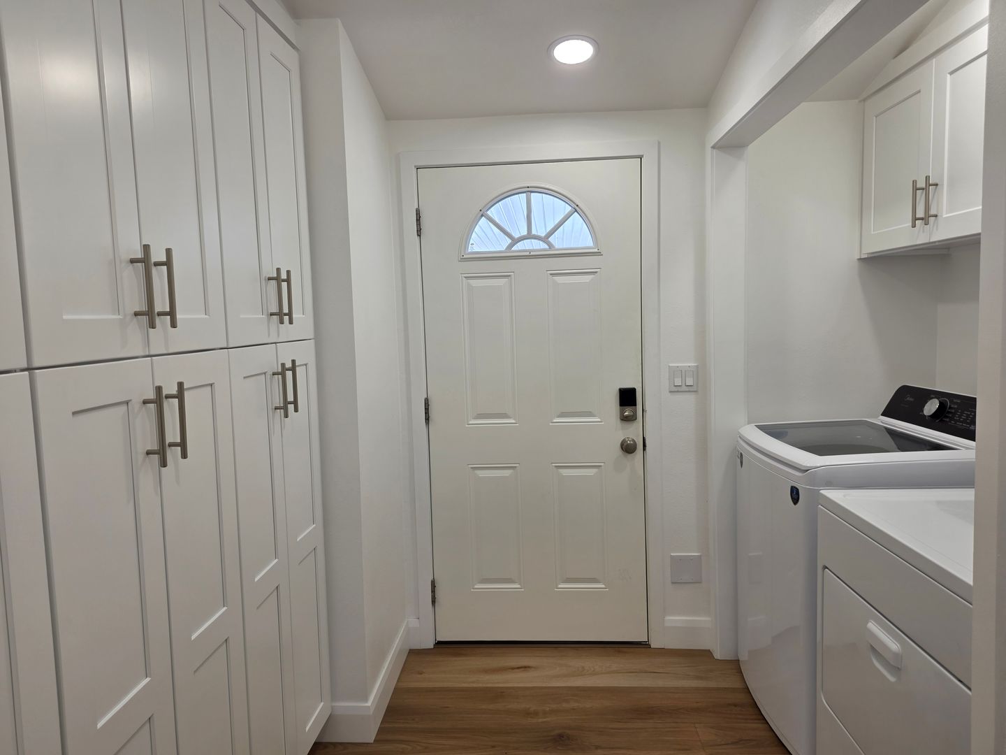 Both bathrooms have been tastefully remodeled with modern finishes that offer both beauty and function. A huge indoor laundry room provides plenty of convenience, with a full wall of cabinets and included washer/dryer.