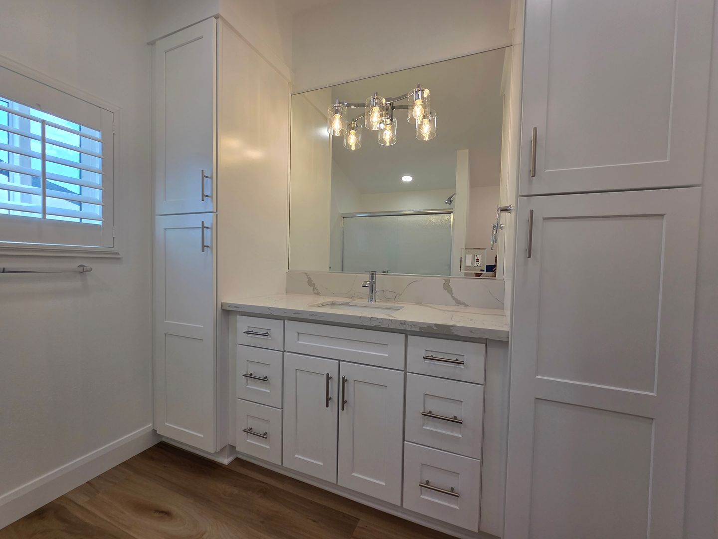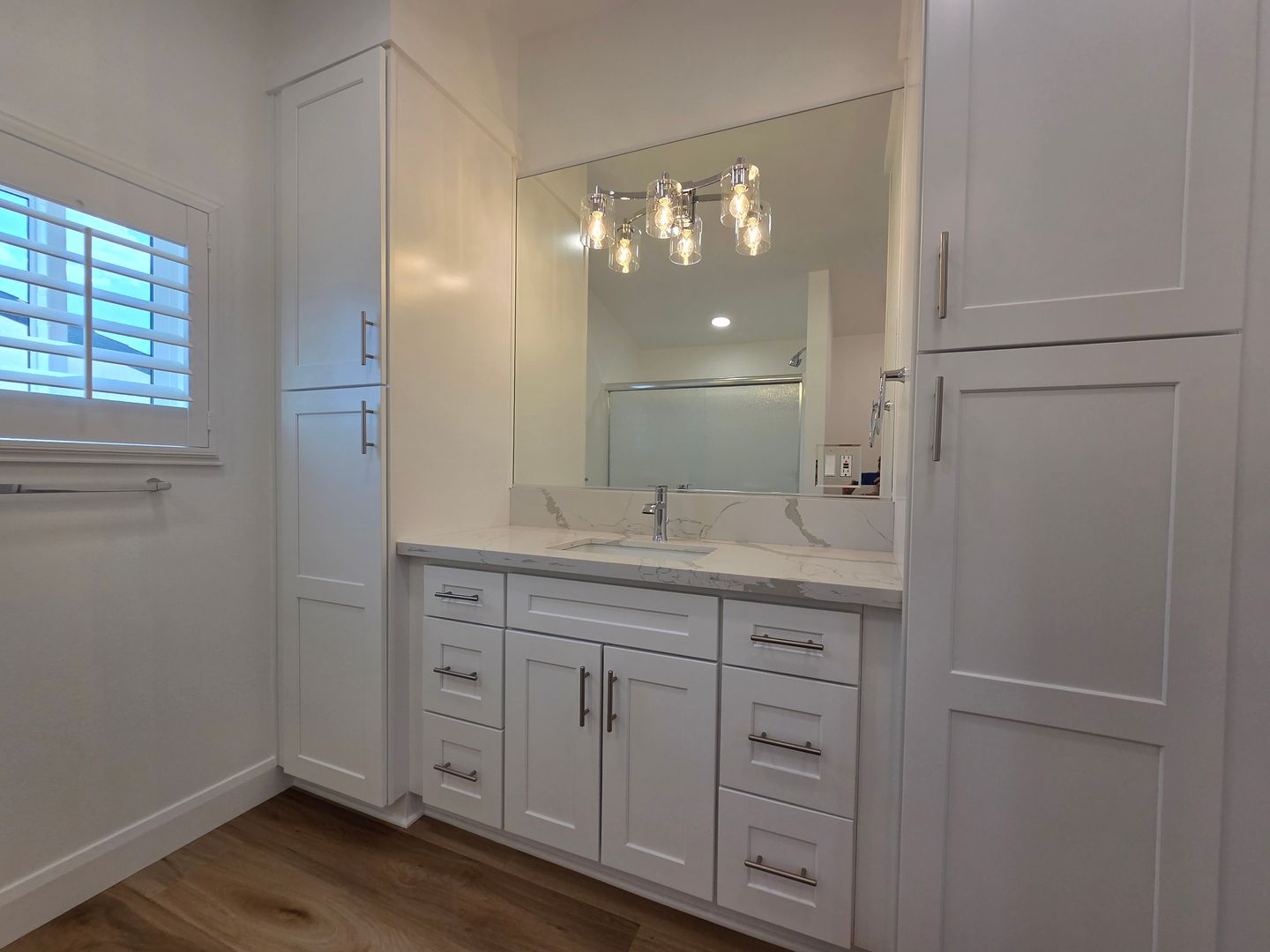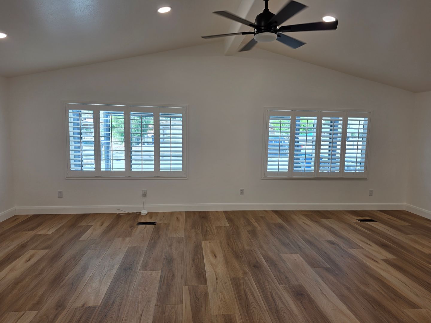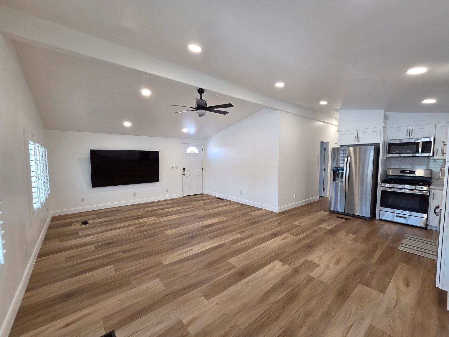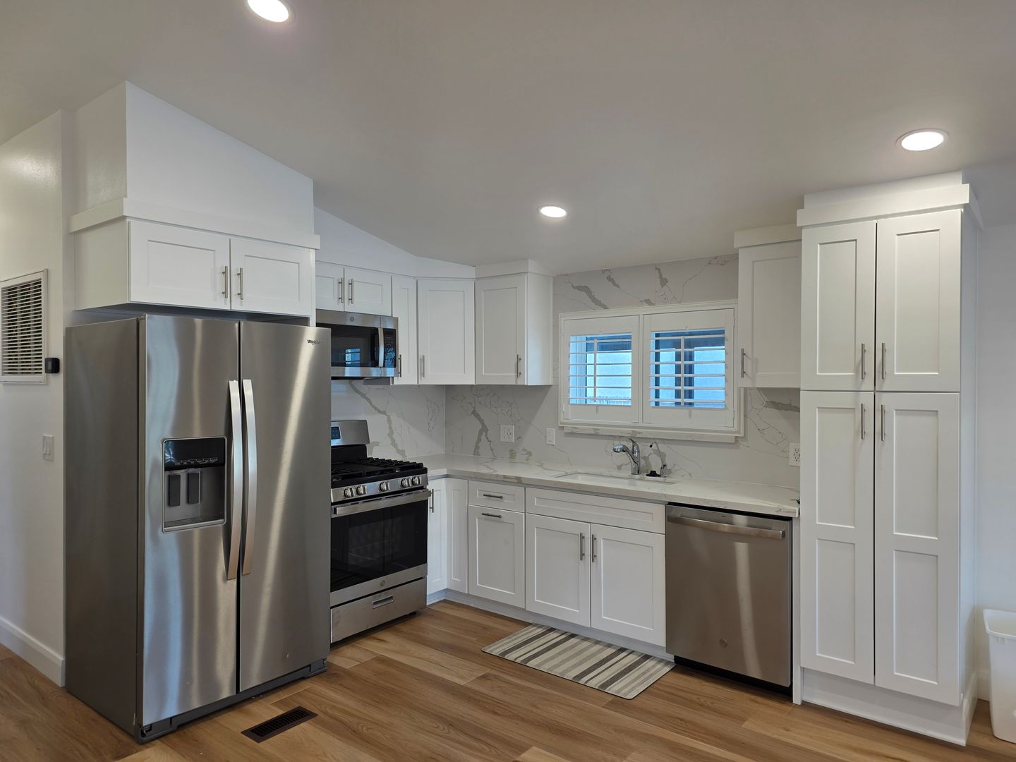 Step inside to find an updated kitchen featuring stainless steel appliances, granite countertops, and soft-close cabinetry. The home boasts durable and stylish vinyl plank flooring throughout, recessed lighting, and Plantation Shutters in every room.